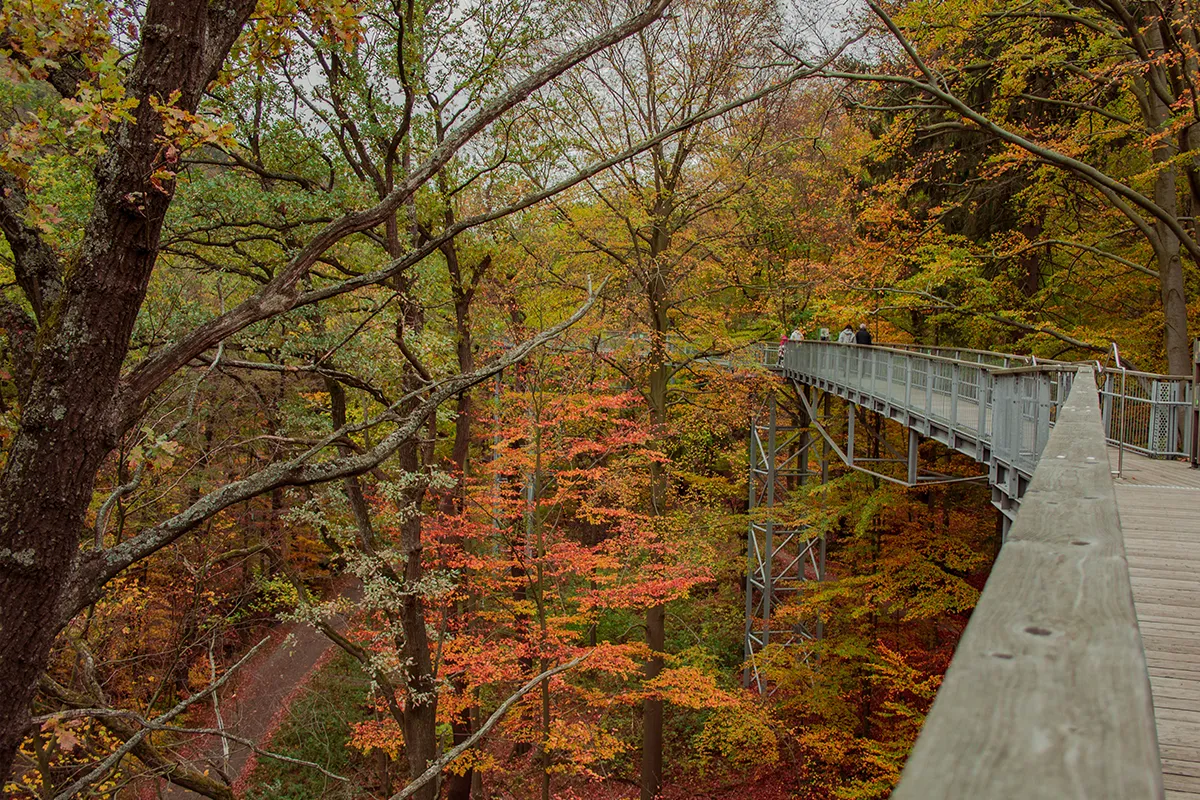 Ein besonderes Naturerlebnis erwartet Sie auf dem Baumwipfelpfad in Bad Harzburg. Der barrierefreie Rundweg führt in bis zu 30 Metern Höhe durch die Baumkronen des Kalten Tals und bietet eindrucksvolle Ausblicke in die Harzer Landschaft.